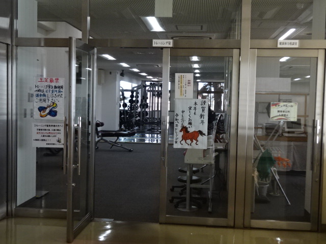 筋トレ4日が初日で11時開始の習志野市東部体育館へ14時に行きました。日中は快晴で穏やか。入館し1階受付で年頭挨拶。アリーナではすでにバドミントンなどの練習が始まっていました。