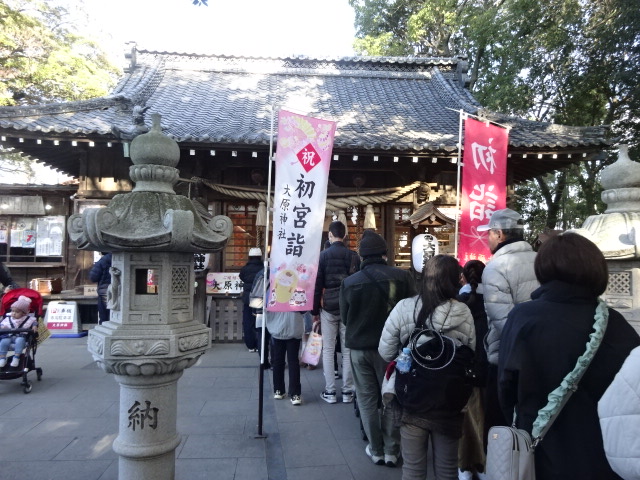 帰りに、縁結びで有名な習志野の大原神社(京成線実籾駅から徒歩3分)へ立ち寄りましたが、休日ということで、神社出入口階段まで参詣者の長い列。神社は1124(天治元)年習志野市実籾本郷に創建。御成街道の整備に伴い1593(文禄元)年、当地へ遷座。