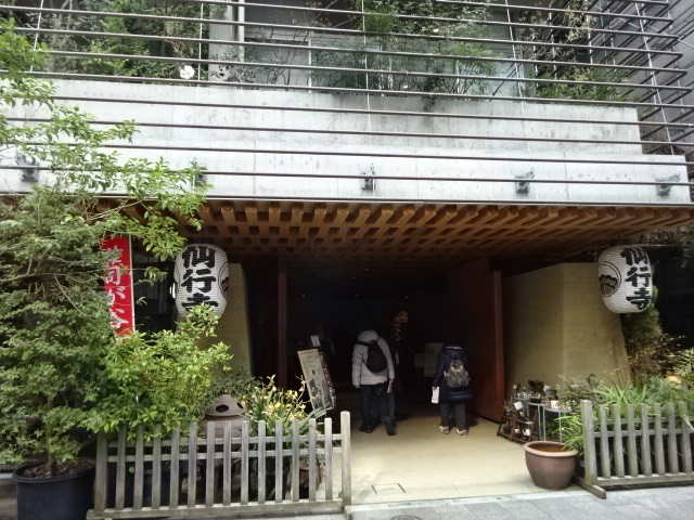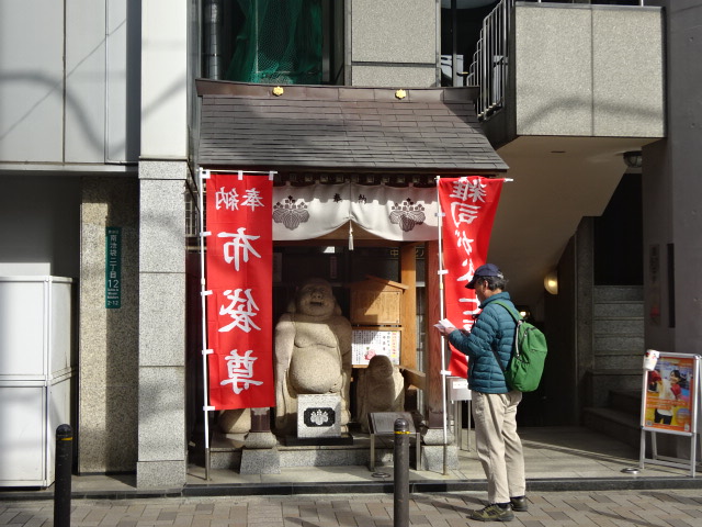 その後もマップがわかりにくく、大勢のハイカーが立ち往生。何とかコースに戻って赤タイルの道を発見。雑司が谷旧宣教師館の洋風建築を外観。その先の雑司ヶ谷霊園へ。両側に多くの墓地があり、今話題の小泉八雲他、大川橋蔵、東條英機が祀られていました。園内を抜けて、都電雑司ヶ谷駅横の踏切を渡って池袋駅方面へ。駅近くで中野ビル(布袋尊)はビルの1階出入口に、最後の七福神は駅前でしたが、こちらも行き過ぎて迷ってしまい戻って仙行寺(華の福禄寿・池袋大仏)を参拝。こちらもビルの1階部分の奥にあり、ビル全体に緑のカーテンがかかっていて、都会ならではの新旧共存。その後、池袋東口前で解散。