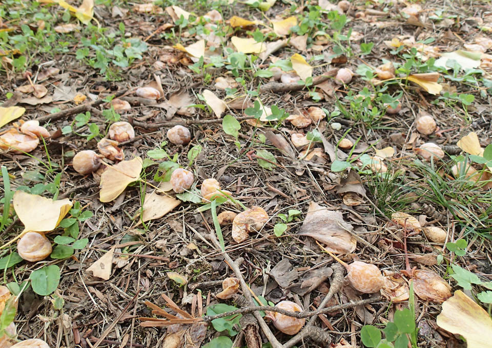 10月15~17日、筋トレの帰りに毎日、近くの駐車場内に立ち寄ってぎんなん拾い。